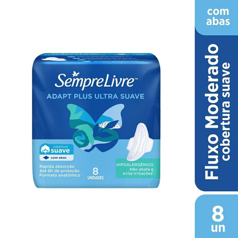 Absorvente Sempre Livre Adapt Plus Ultra Suave Com Abas 8 Unidades