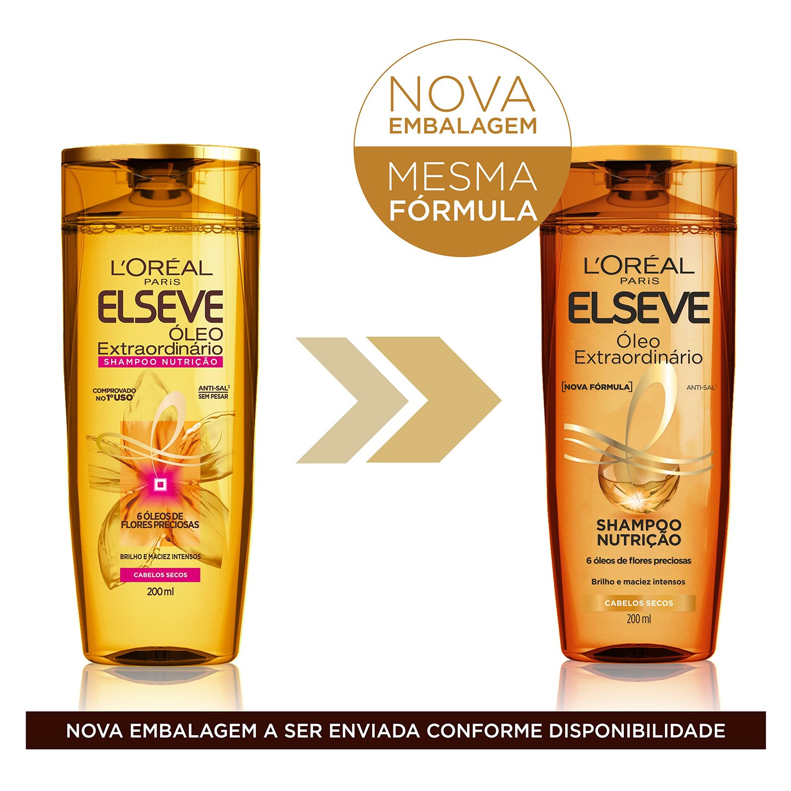 O shampoo Elseve Óleo Extraordinário Nutrição - 200ml conta com a ação dos micro-óleos de flores preciosas para limpar os fios e garantir a nutrição que os os cabelos precisam para ter vitalidade, leveza, maciez e brilho. Indicado para cabelos secos ou opacos.